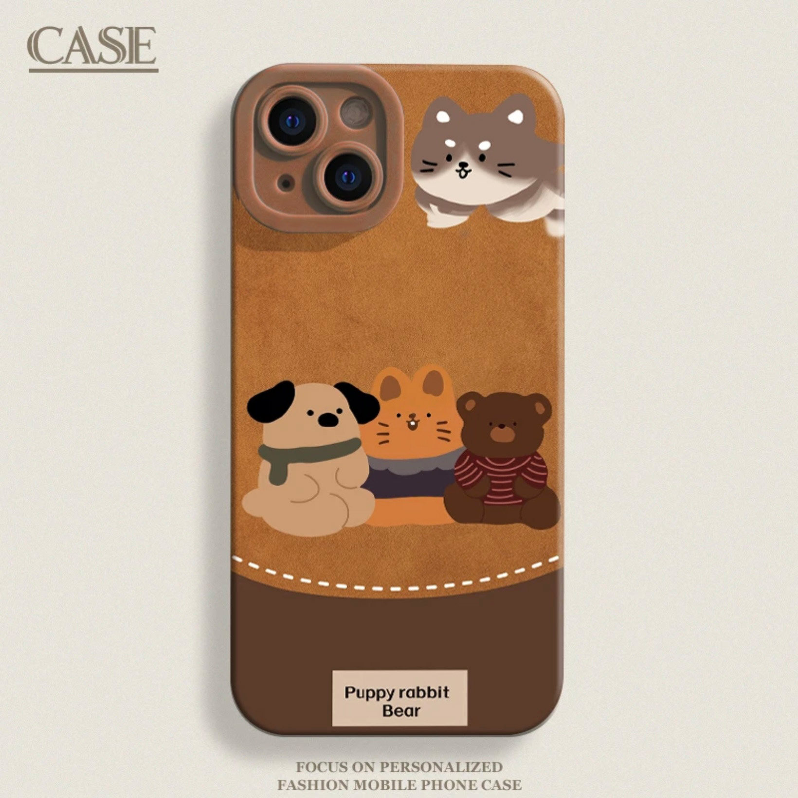 秋冬三只小动物适用苹果16promax手机壳iPhone15卡通14promax可爱13创意12个性11白色磨砂天使眼17promax男女