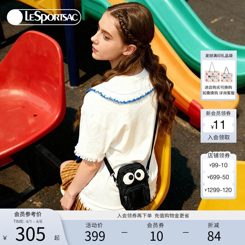LeSportsac乐播诗新款表情系列时尚女包轻便通勤斜挎包黑色手机包