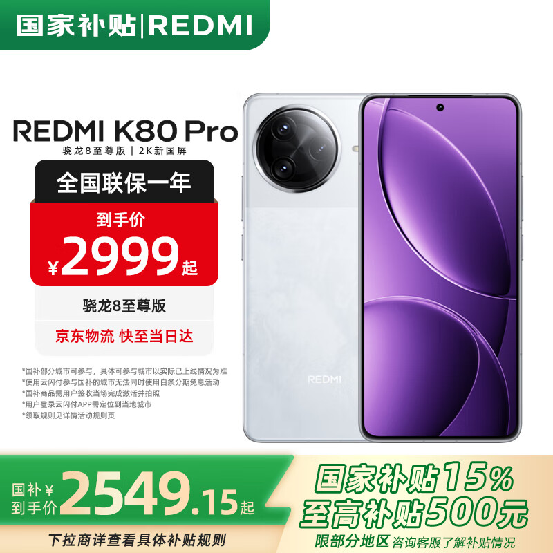 小米红米K80Pro【国家补贴15%】 新品5G手机 小米红米手机 雪岩白 12GB+512GB