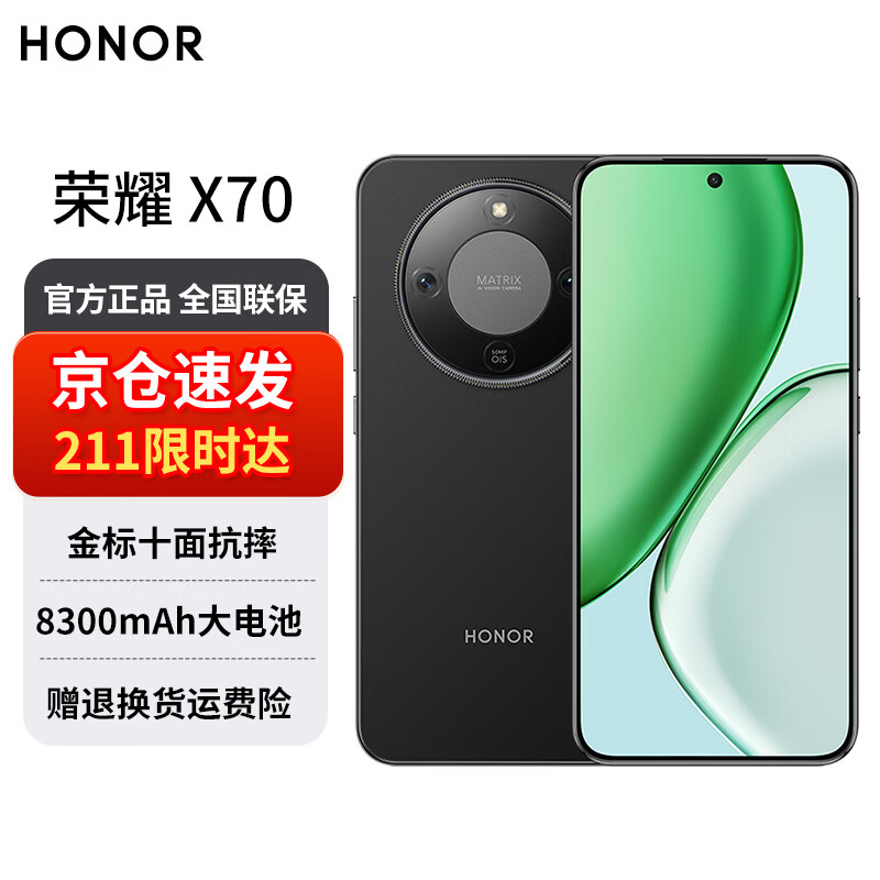 荣耀X70【京仓速发】5G智能手机 IP69金标十面抗摔 8300mAh青海湖电池 绿洲护眼屏 手机荣耀x70 幻夜黑 8GB+256GB 官方标配