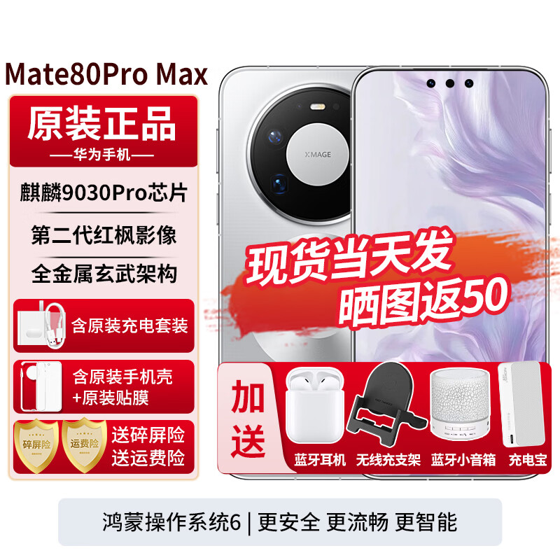 华为Mate80ProMax【24期免息】麒麟9030Pro新品鸿蒙AI手机全金属玄武架构超透亮灵珑屏新机2025年上市 极地银 16G+512GB 全网通 24期免息