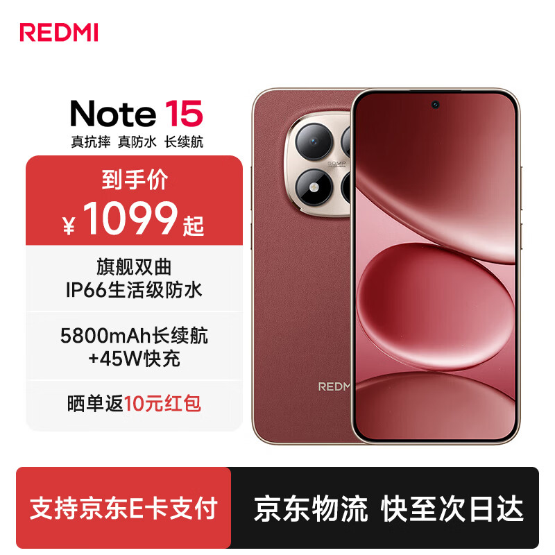 小米REDMI Note15 【国家补贴】新品5G小米红米手机 第三代骁龙6金刚品质 5800mAh大电量IP66防尘防水 车厘子红【新春色】 8GB+128GB