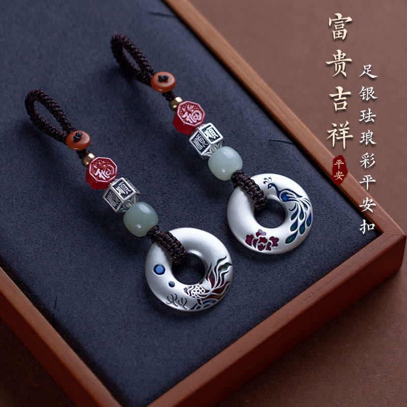 足银平安扣汽车钥匙挂件绳手机链编饰品吊坠高档礼物男女新年礼