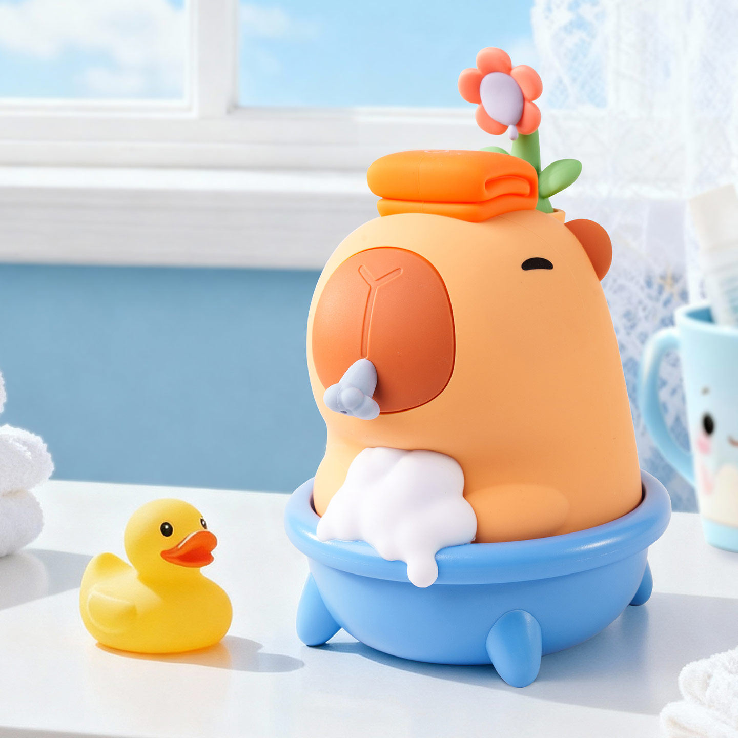 卡皮巴拉可爱卡通洗护泡沫机儿童洗手机洗头神器宝宝戏水玩具沐浴
