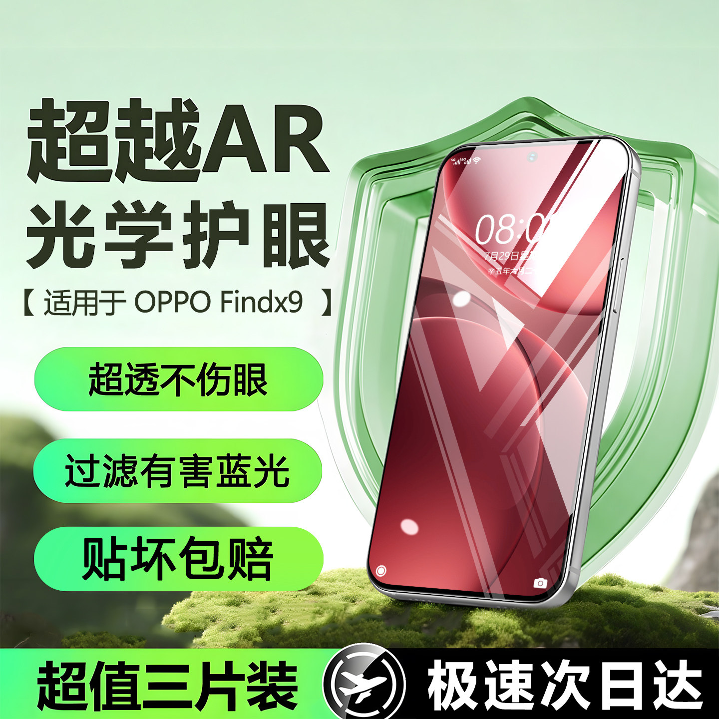【超越AR护眼】适用oppofindx9钢化膜findx8s+手机膜findx8ultra屏幕护眼reno14/13防窥8/7/9防摔保护贴膜爆
