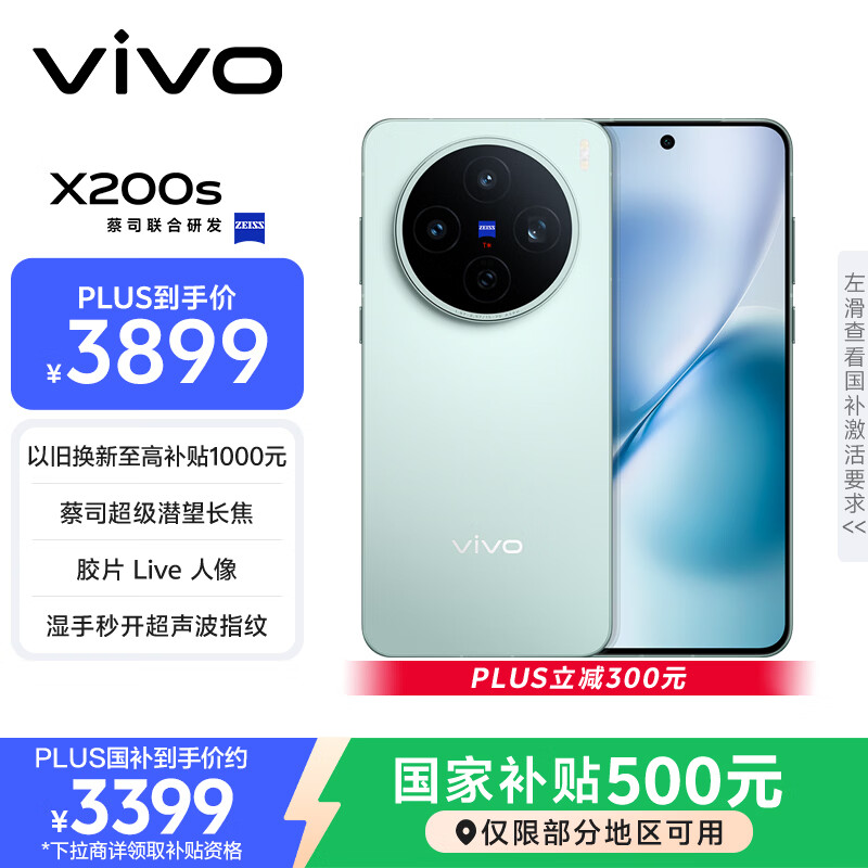 vivo X200s 12GB+256GB 薄荷蓝 国家补贴 蔡司超级潜望长焦 湿手秒开超声波指纹 拍照 AI手机