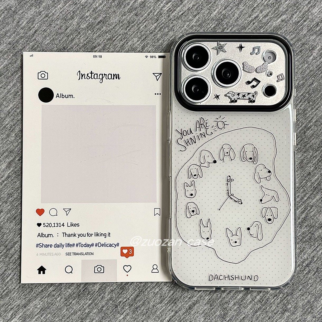 ins韩风波点线条时钟小狗适用苹果17promax手机壳iphone16pro新款15小众创意14双层13女17全包防摔保护套个性
