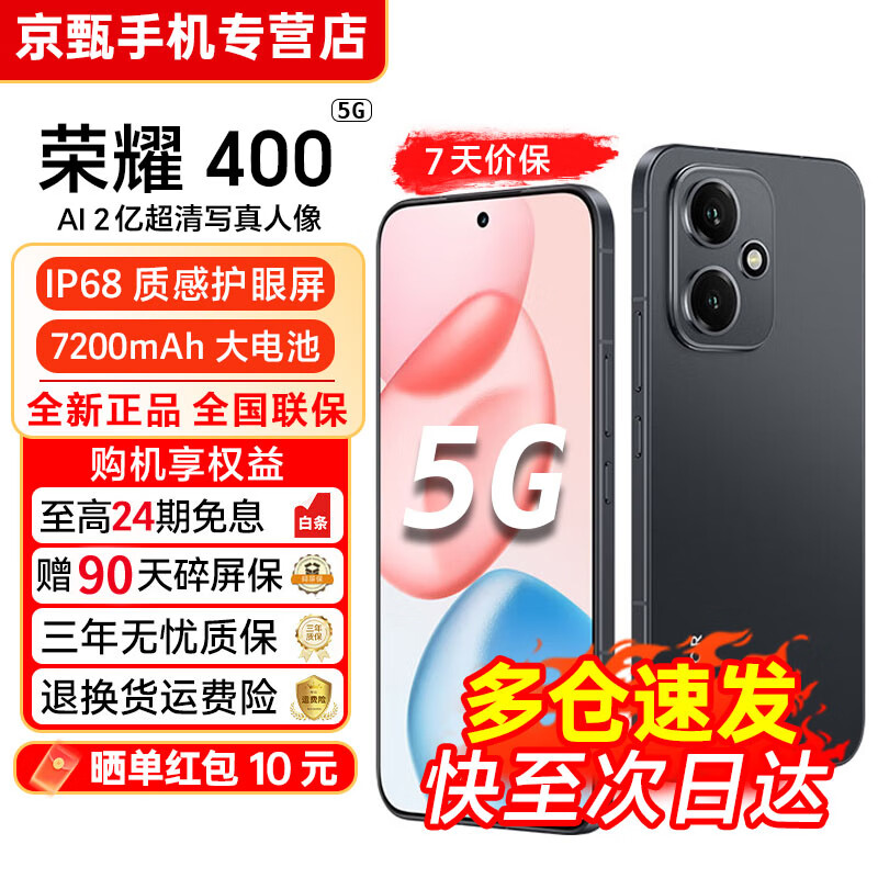 荣耀400 Pro /400【24期免息】5G全网通AI2亿超清写真人像 7200mAh青海湖大电池护眼学生新品拍照手机 幻夜黑 12GB+512GB【荣耀400】 官方标配【赠2年店铺延保+90天碎屏保】