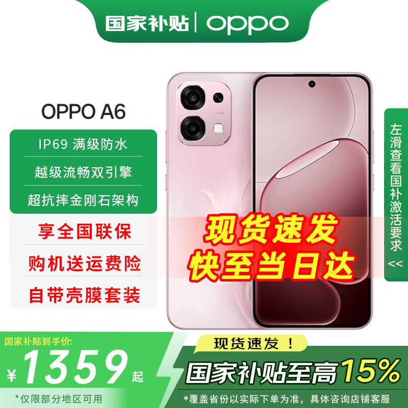 OPPO【国家补贴减15%】OPPO A6 5G手机 耐用新一代 强悍更流畅 越级流畅双引擎 a6 IP69 满级防水 手机 粉梦生花 12GB+256GB