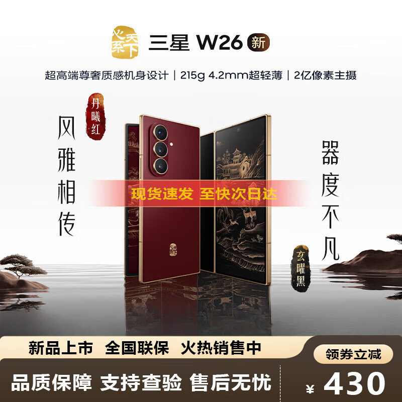 三星(SAMSUNG)心系天下 W26 折叠屏手机 超轻薄超大屏 2亿像素 新品5G手机 丹曦红 16+512GB 10-11月补贴机【联保】
