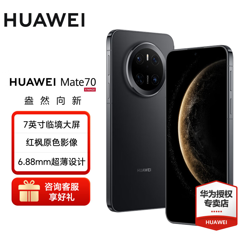HUAWEI Mate 70 国家补贴500元【现货当天发】mate70鸿蒙AI 红枫原色影像 华为鸿蒙智能手机新品 曜石黑 12GB+512GB 官方标配
