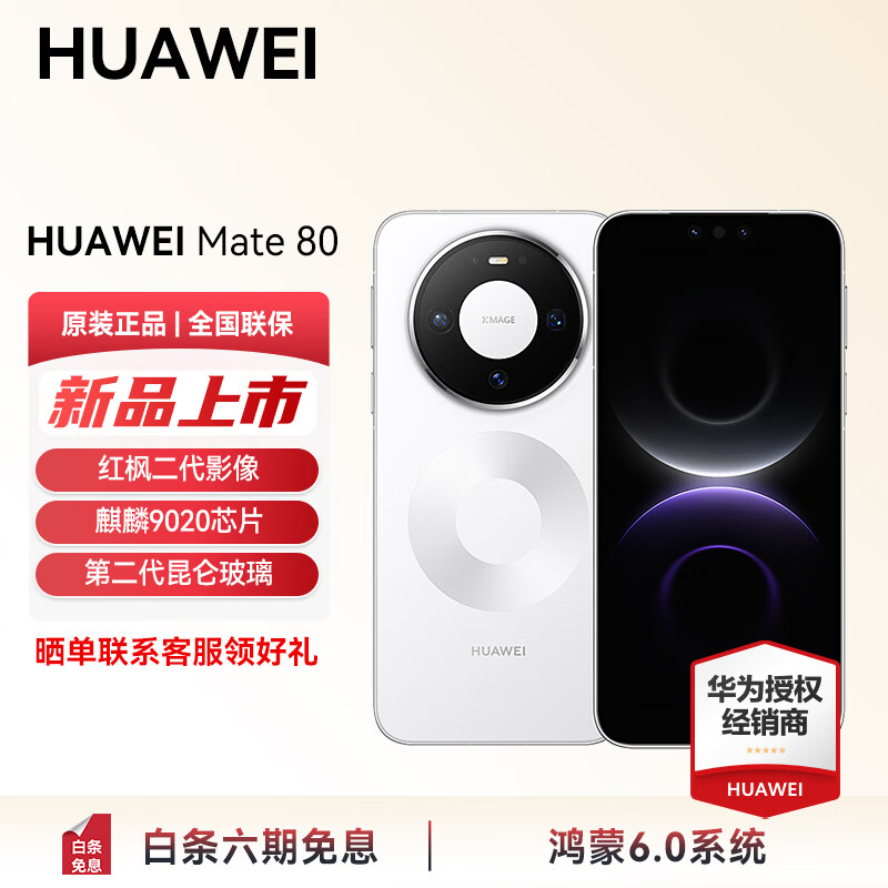 华为(HUAWEI)Mate 80 新品 第二代红枫影像 国家补贴 华为直屏手机 鸿蒙AI6.0系统 第二代昆仑玻璃 新款手机 雪域白 12+512GB 官方标配