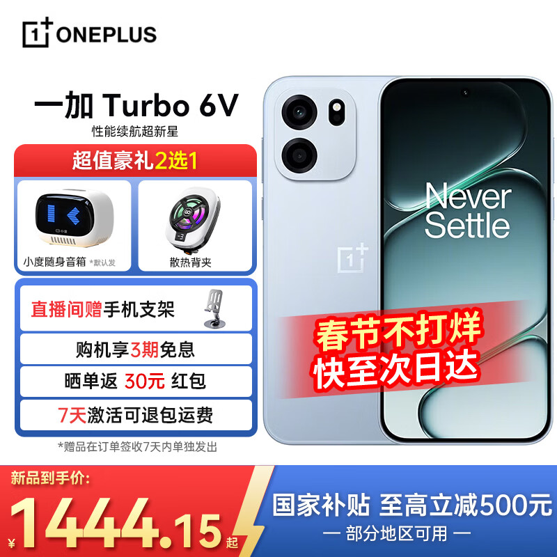 一加 【国家补贴】Turbo 6V 性能续航超新星 新品5G游戏手机 无畏蓝 8GB+256GB 官方标配
