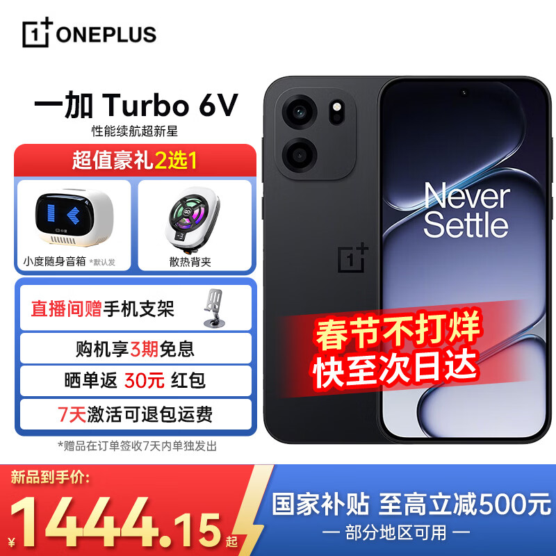 一加 【国家补贴】Turbo 6V 性能续航超新星 新品5G游戏手机 独行黑 8GB+256GB 官方标配