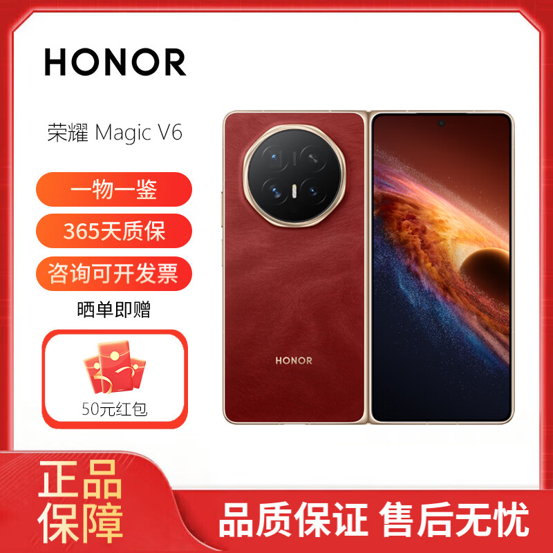 HONOR 荣耀 Magic V6 智能手机 新款折叠屏手机 荣耀magic v6国际版 预售 赤兔红 512G(预售定金 多退少补)