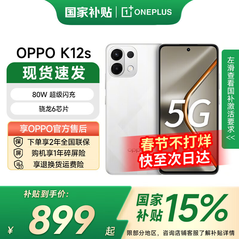 OPPO【国家补贴】K12s手机 天玑6300 防尘防水 5G游戏智能老年备用机 星芒白 8GB+128GB 官方标配