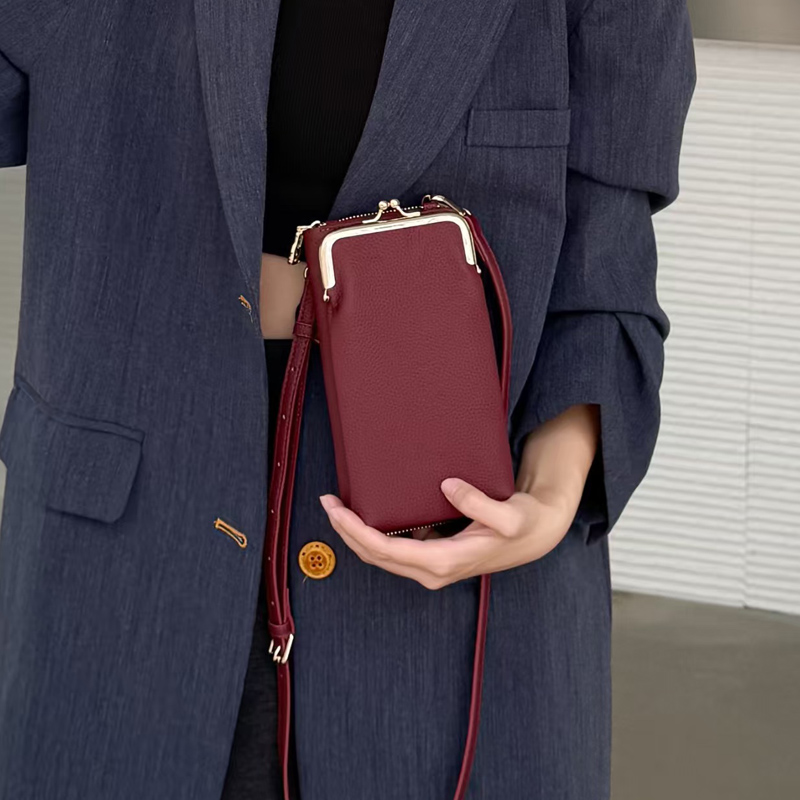 纯牛皮单肩斜挎小包包女高颜值真皮夹子零钱包手机包二合一休闲包