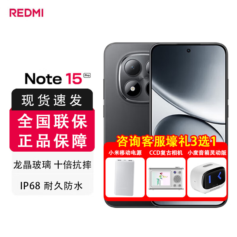 小米REDMI Note 15 Pro 新一代小金刚 红米 5G手机 新机上市 子夜黑 8+256GB 官方标配