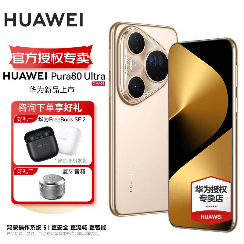 HUAWEI Pura 80 Ultra 一英寸超高动态 主摄超大底双长焦 华为鸿蒙智能手机 鎏光金 16GB+1TB 官方标配