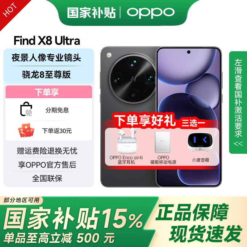 OPPOFind X8 Ultra 夜景人像专业镜头 丹霞原彩镜头 骁龙8至尊版 新品5G游戏拍照旗舰手机 星野黑 16GB+512GB 官方标配