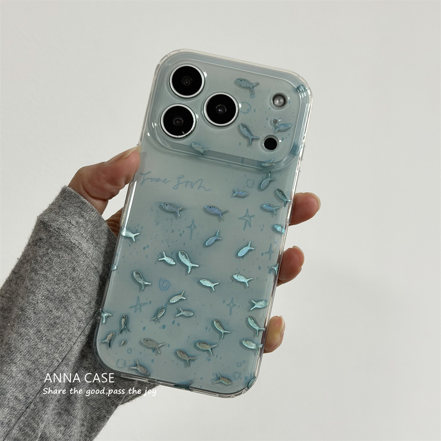 ANNACASE春日清透薄荷蓝灵动小鱼群适用苹果17promax手机壳iphone14女15pro新款17全包16promax防摔保护套17