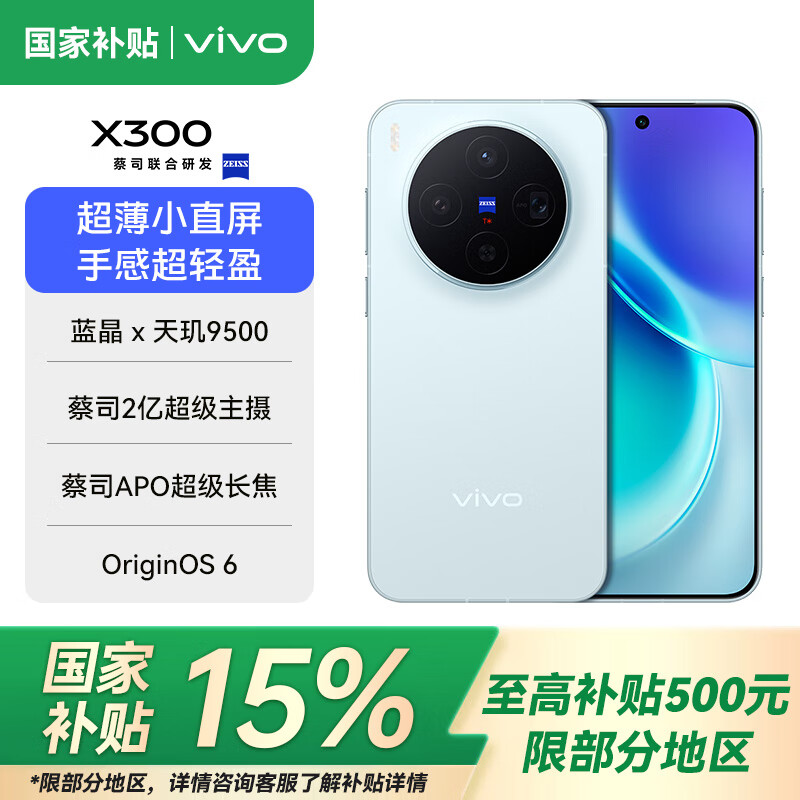 vivoX300 新品5G拍照手机 蔡司2亿超级主摄 蔡司APO超级长焦 5年持久流畅OriginOS 6 自在蓝 12GB+512GB 官方标配