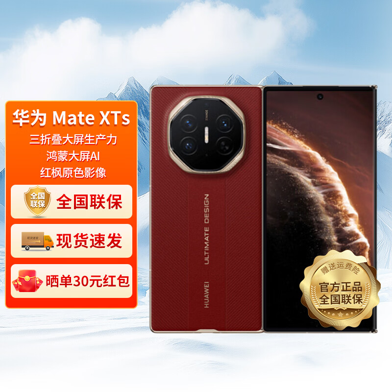 HUAWEI【24期分期】华为 Mate XTs 非凡大师 新品旗舰三折叠手机 智能鸿蒙手机 瑞红 16GB+512GB 24期分期
