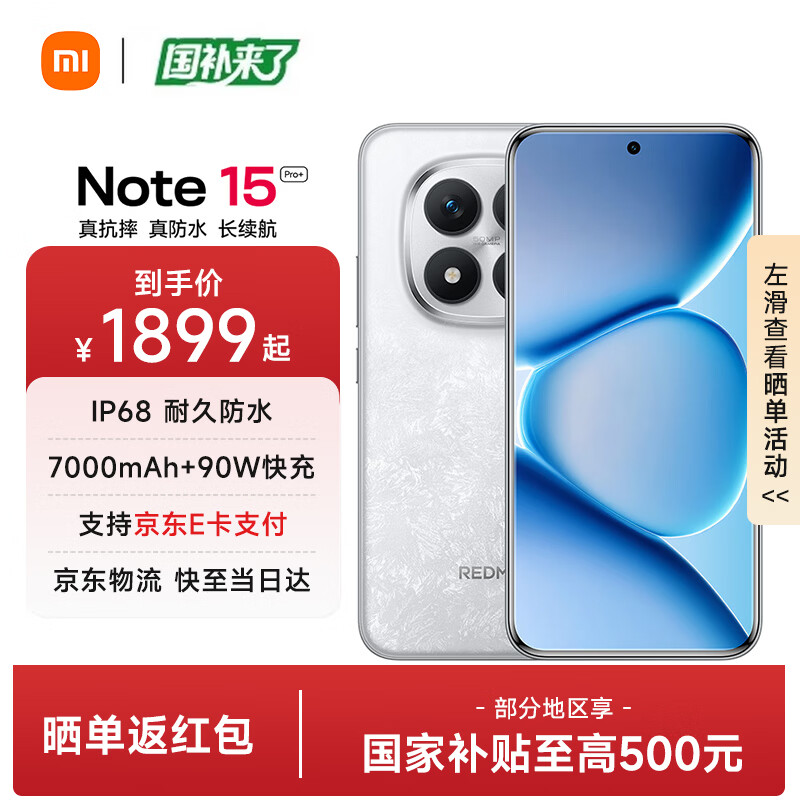 小米红米Note15 Pro+【国家补贴】新品5G小米红米手机 REDMI 第四代骁龙7s 7000mAh IP68防水 雪松白 12GB+256GB