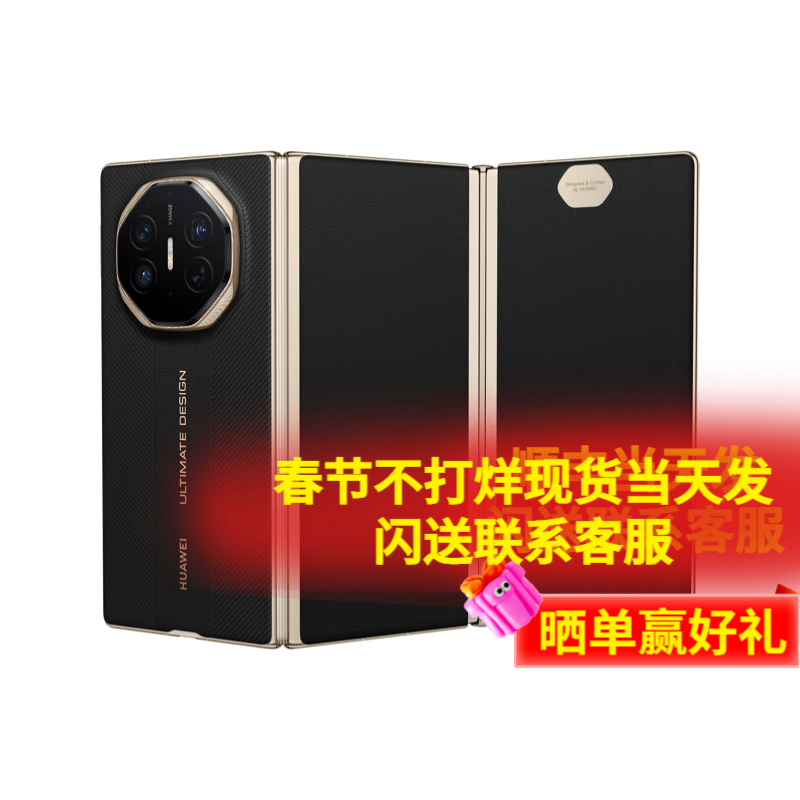 华为(HUAWEI)Mate XTs 非凡大师 华为matexts三折叠手机 鸿蒙智能手机新品上市 【现货当天发】 玄黑 16GB+1TB