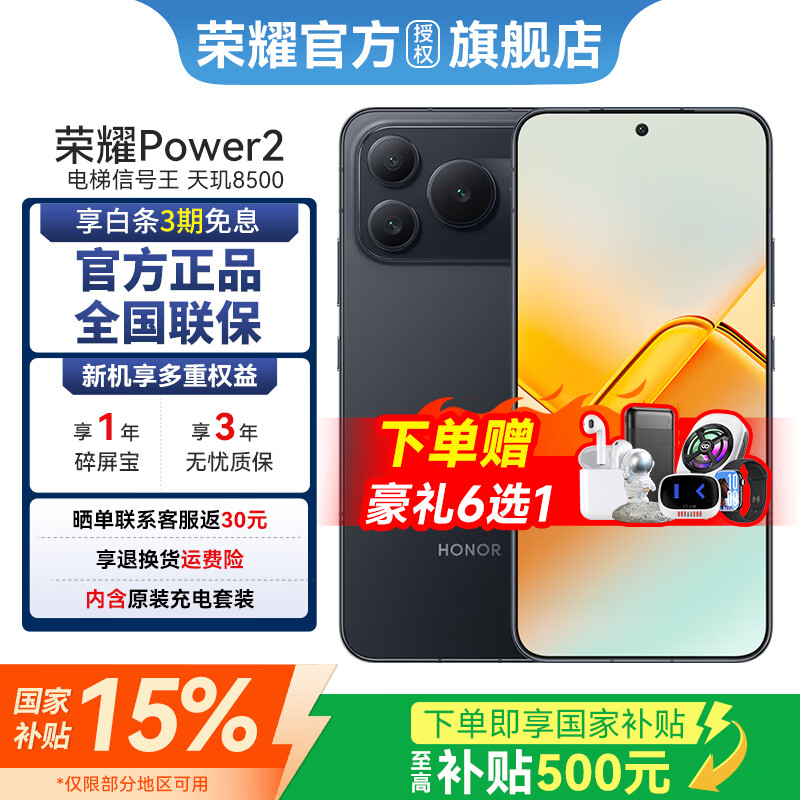 荣耀Power2 【国家补贴15%】 新品5G手机 10080mAh青海湖电池 天玑8500 Elite 手机荣耀power2 幻夜黑 12GB+256GB 官方标配【3期免息】