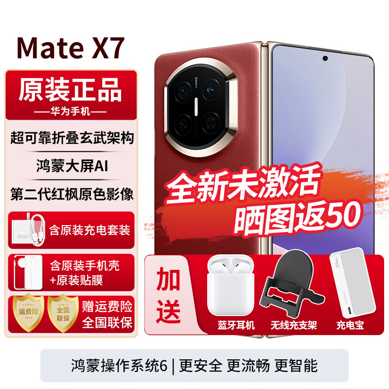 华为MateX7 新品折叠屏手机【24期免息】麒麟9030pro红枫影像鸿蒙大屏AI2025年上市 手写笔典藏版可选 寰宇红 12G+512GB 全网通 官方标配