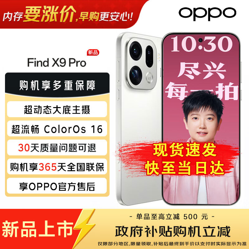 OPPO【政府补贴】OPPO Find X9 Pro新品手机旗舰 哈苏影像 旅拍神器 oppo find x9 pro 霜白 12GB+512GB