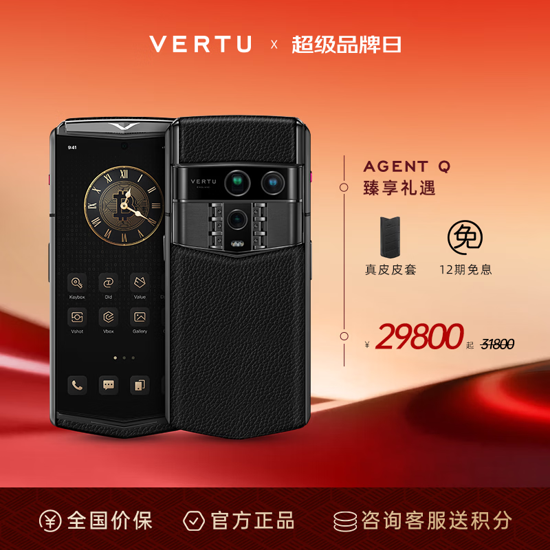 VERTU【新品上市 大额补贴】威图纬图AGENT Q奢品AI智能体手机旗舰高端商务直面屏安全加密三系统礼品 墨玉黑小牛皮 16GB+1TB