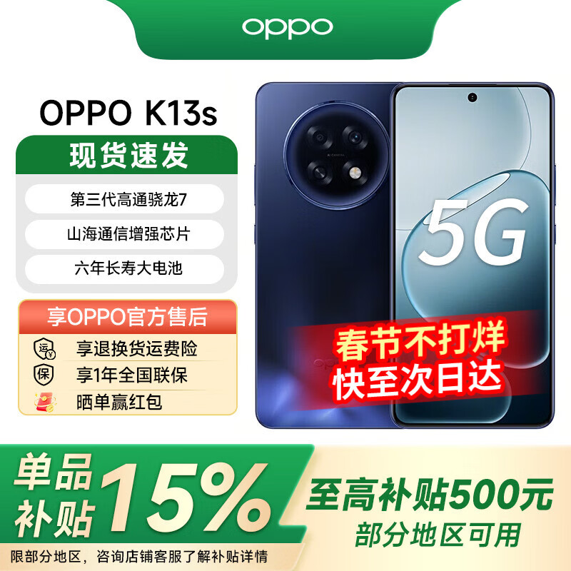OPPO 【国家补贴】K13s手机第三代骁龙7 抗摔耐磨 新品5G防水 老人机备用机 聚能蓝 8GB+256GB 官方标配