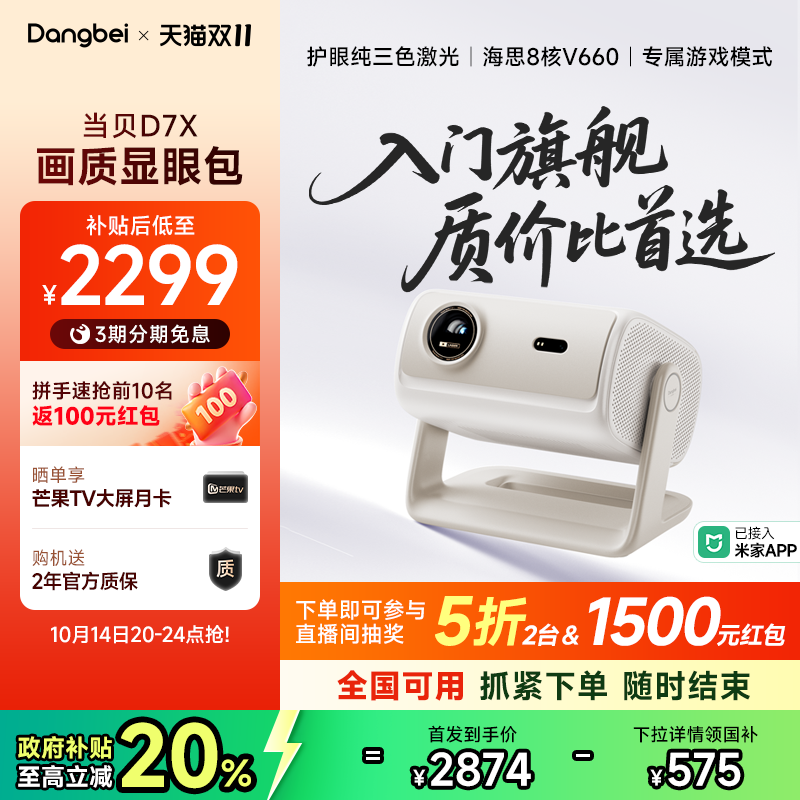 【重磅新品 全国国补立减20%】当贝D7X投影仪家用超高清小型便携激光电视高清高亮智能投影机手机投屏