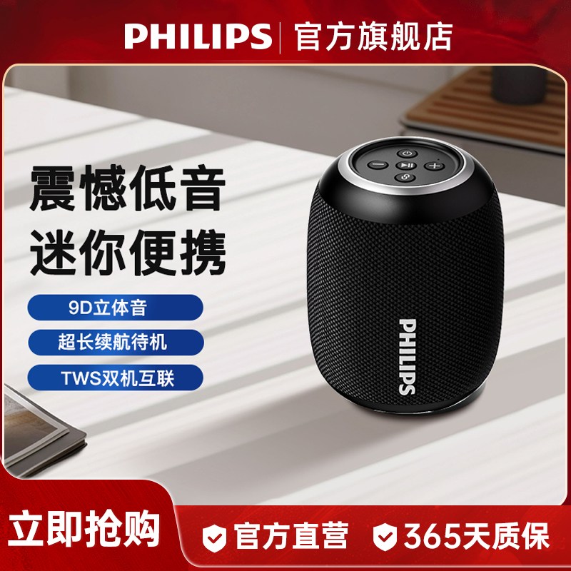飞利浦TAS3109便携式户外蓝牙音响桌面超重低音炮小钢炮手机音箱