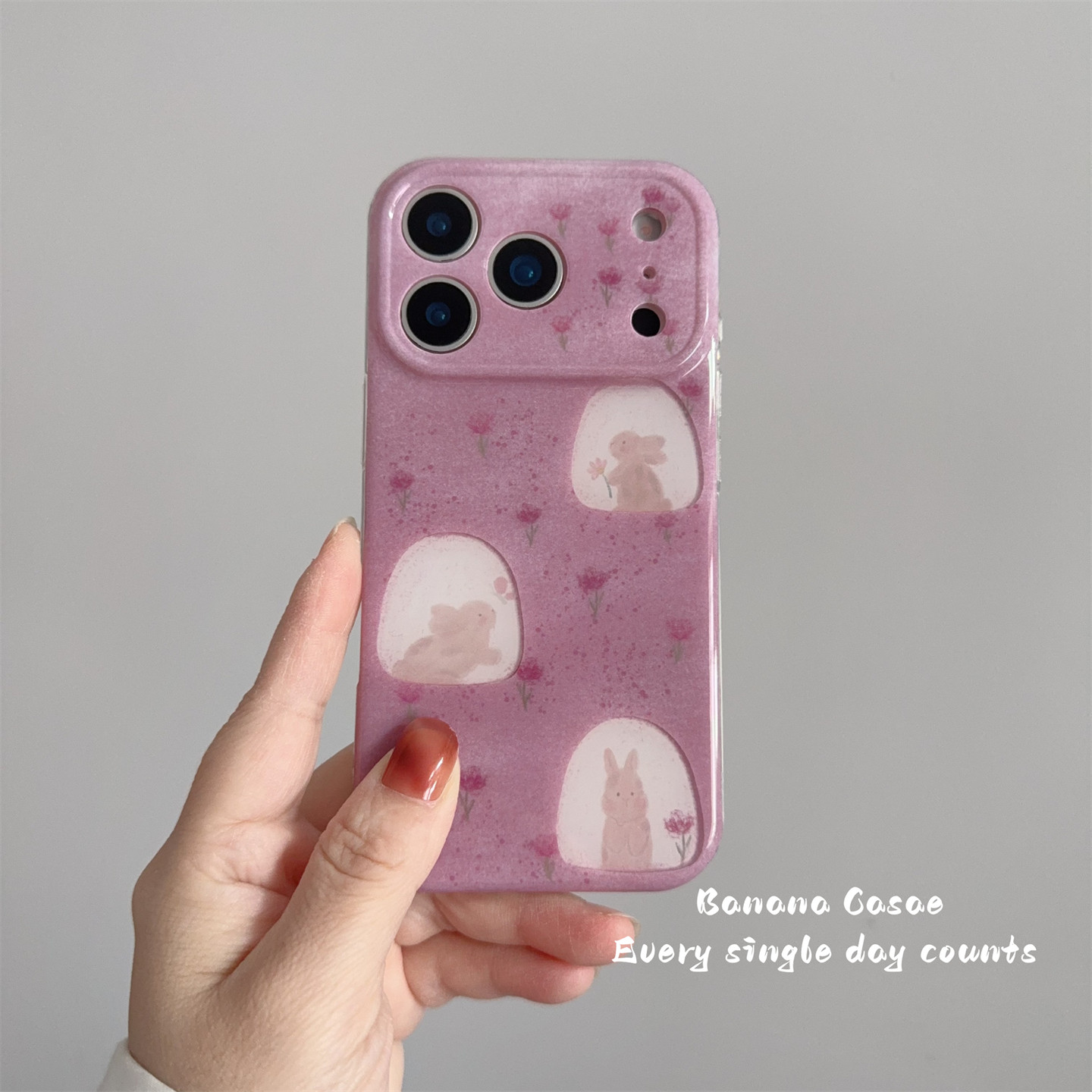 BananaCase韩国ins小众桃花粉泼墨兔子适用17pro苹果16promax手机壳iPhone15光面13/14pro新款防摔17保护套硬