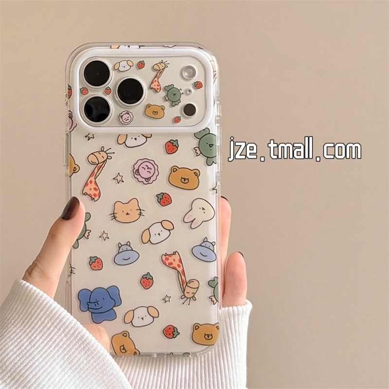 jze 韩风趣味可爱满屏小动物涂鸦适用苹果17ProMax手机壳创意iphone15新款16pro女17pro双层14全包防摔手机套