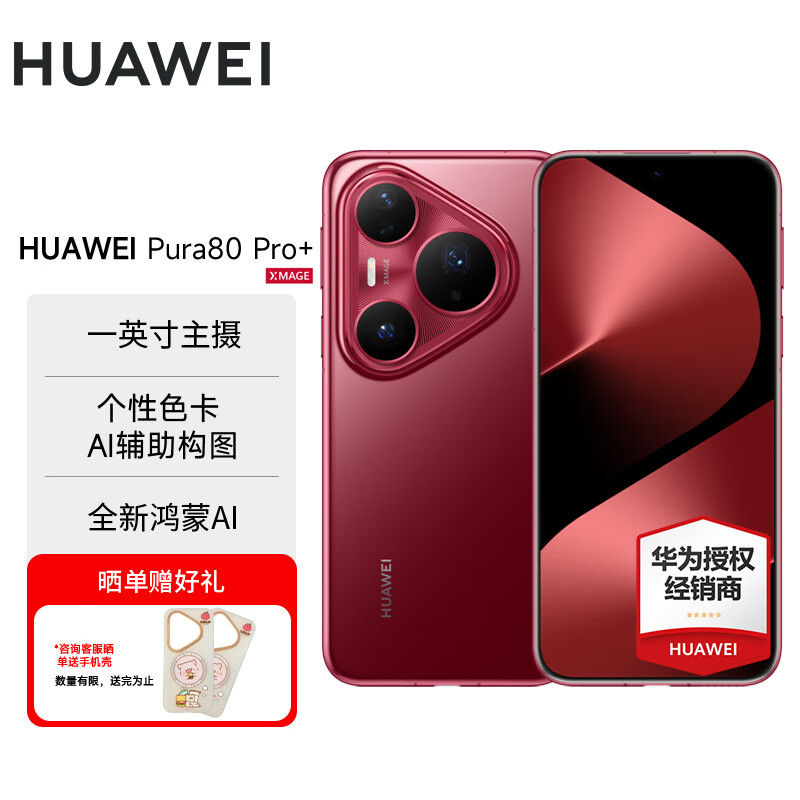 华为(HUAWEI)Pura 80 Pro+新品旗舰手机上市【现货当天发】华为p80pro+手机 釉红 16GB+512GB 官方标配