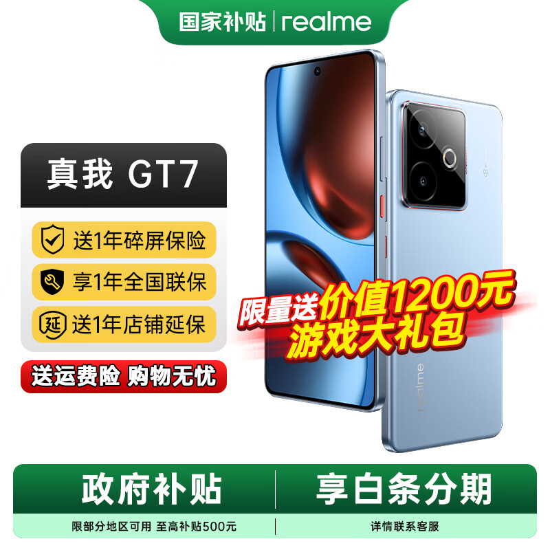 真我【国家补贴】realme真我GT7 新品5G拍照游戏电竞手机 天玑9400+ 7200mAH电池长续航+快充100W 12+512 石墨烯 冰 官方标配