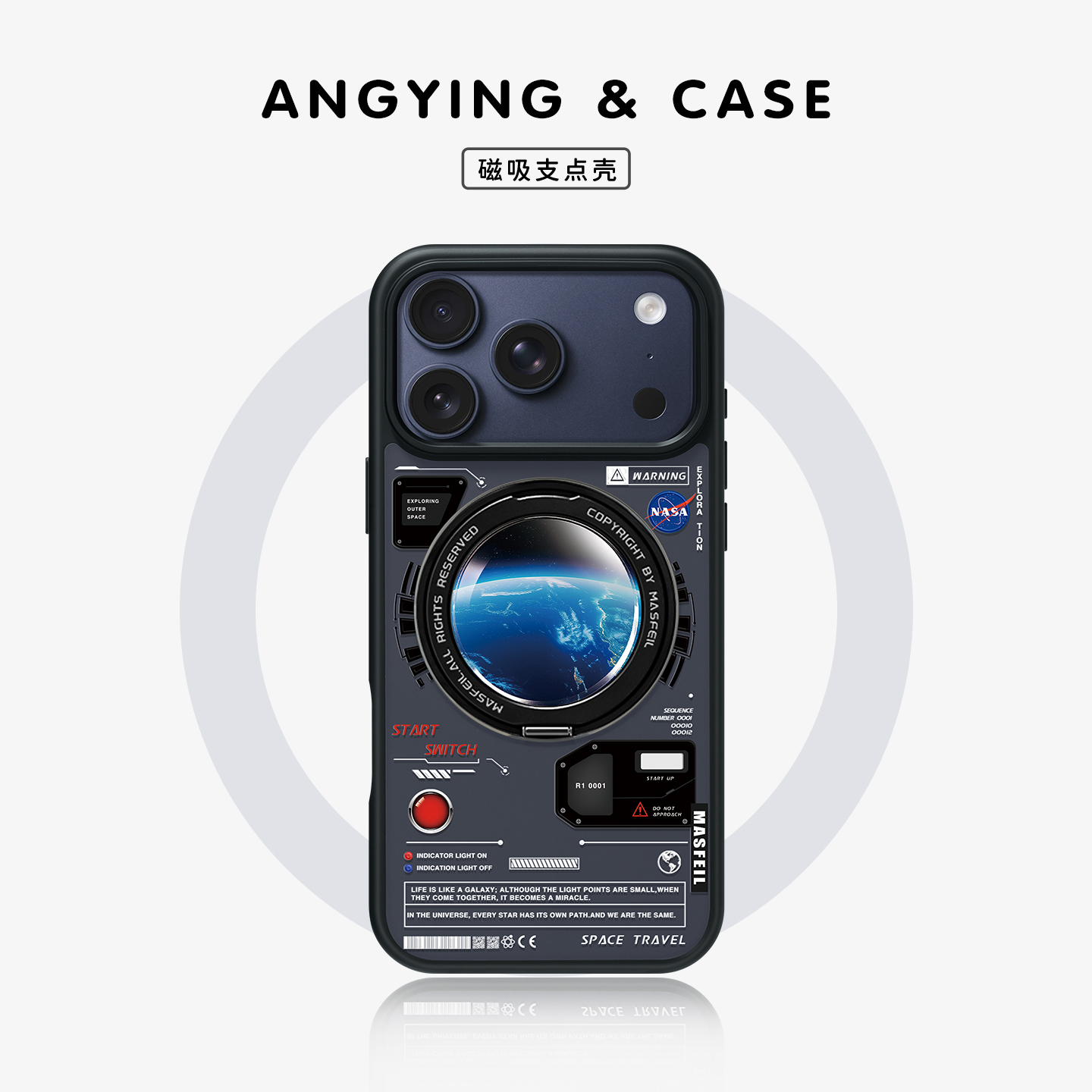 ANGYING × 蔚蓝星球适用苹果17promax手机壳iPhone16pro新款15带支架ip13全包Fo5磁吸支点套创意14高级感