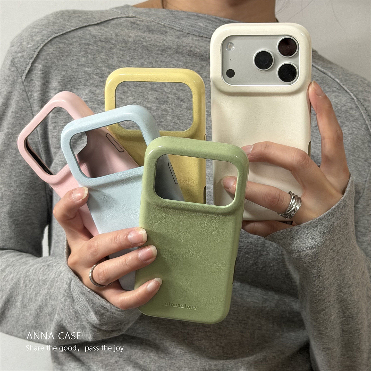 ANNACASE高级ins春天清新纯色皮质适用苹果17promax手机壳iphone14全包17pro新款15pro硬16promax防摔保护套