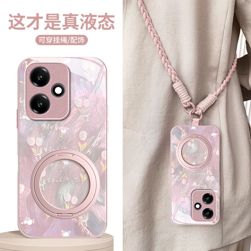 适用镭射小花荣耀400手机壳300ultra少女200玻璃100新款90GT防摔80SE保护套70PRO+金属漆60专用honor50/power