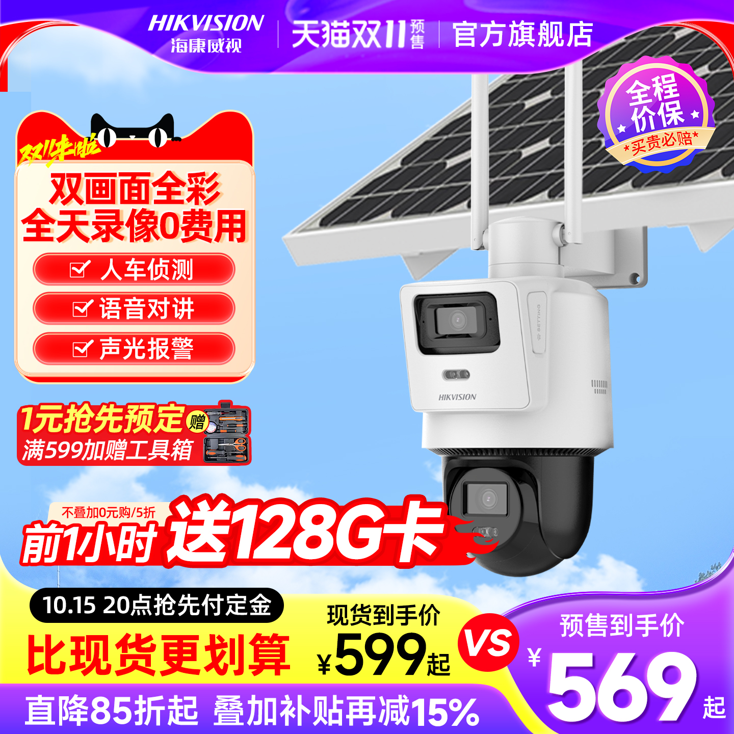 海康威视太阳能4g摄像影头免插电360度高清连手机远程户外监控器