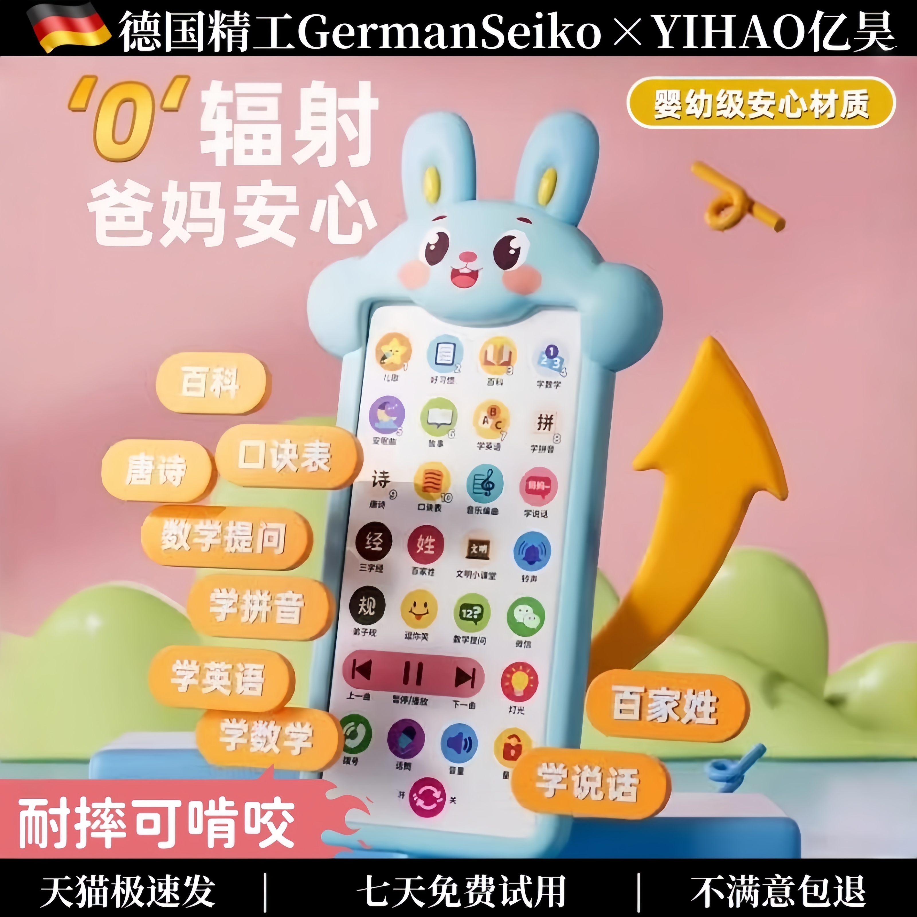德国儿童手机玩具婴儿仿真益智早教电话宝宝3一6岁可啃咬充电触屏