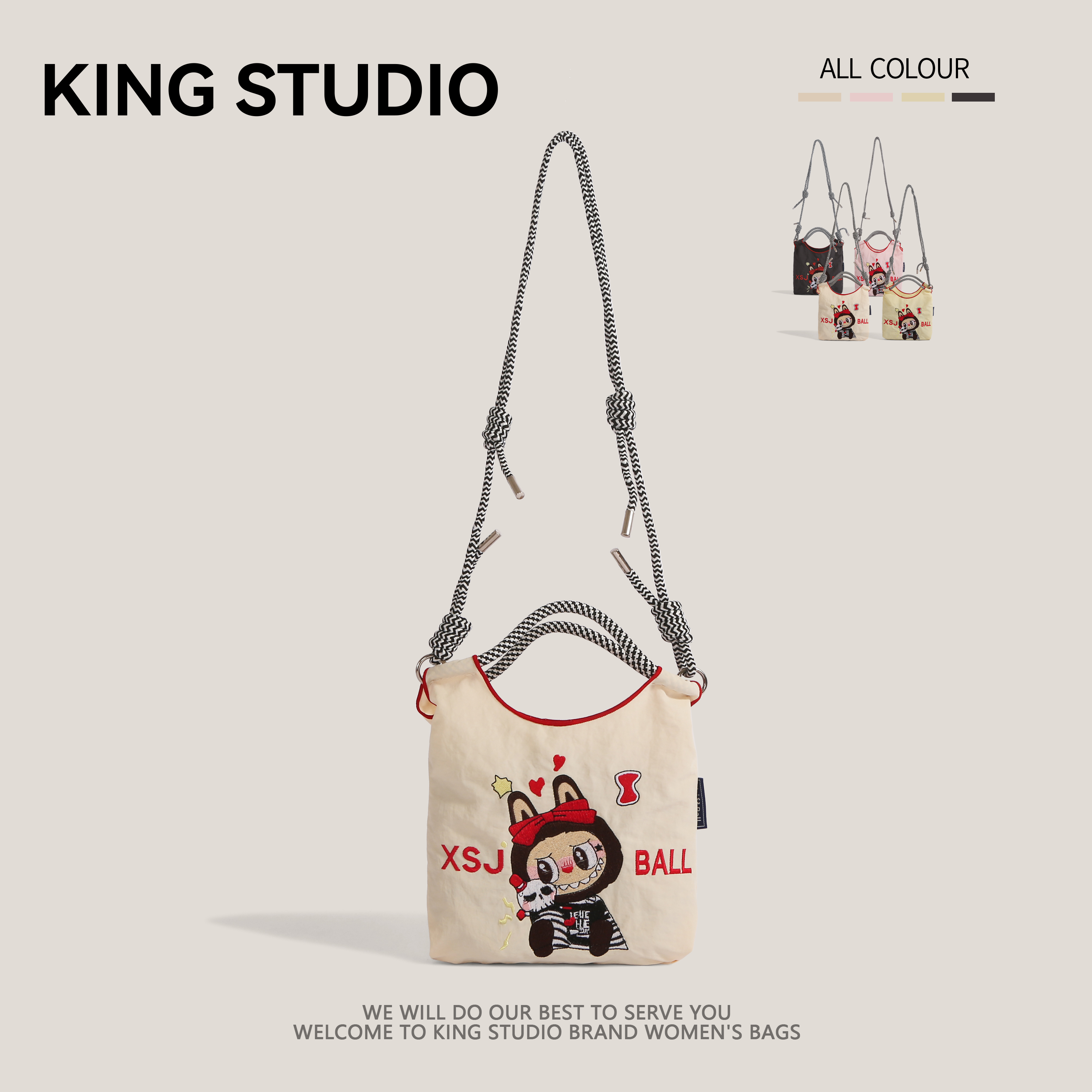 日本ball chain刺绣拉布布环保购物袋迷你手提袋单肩斜挎包手机包