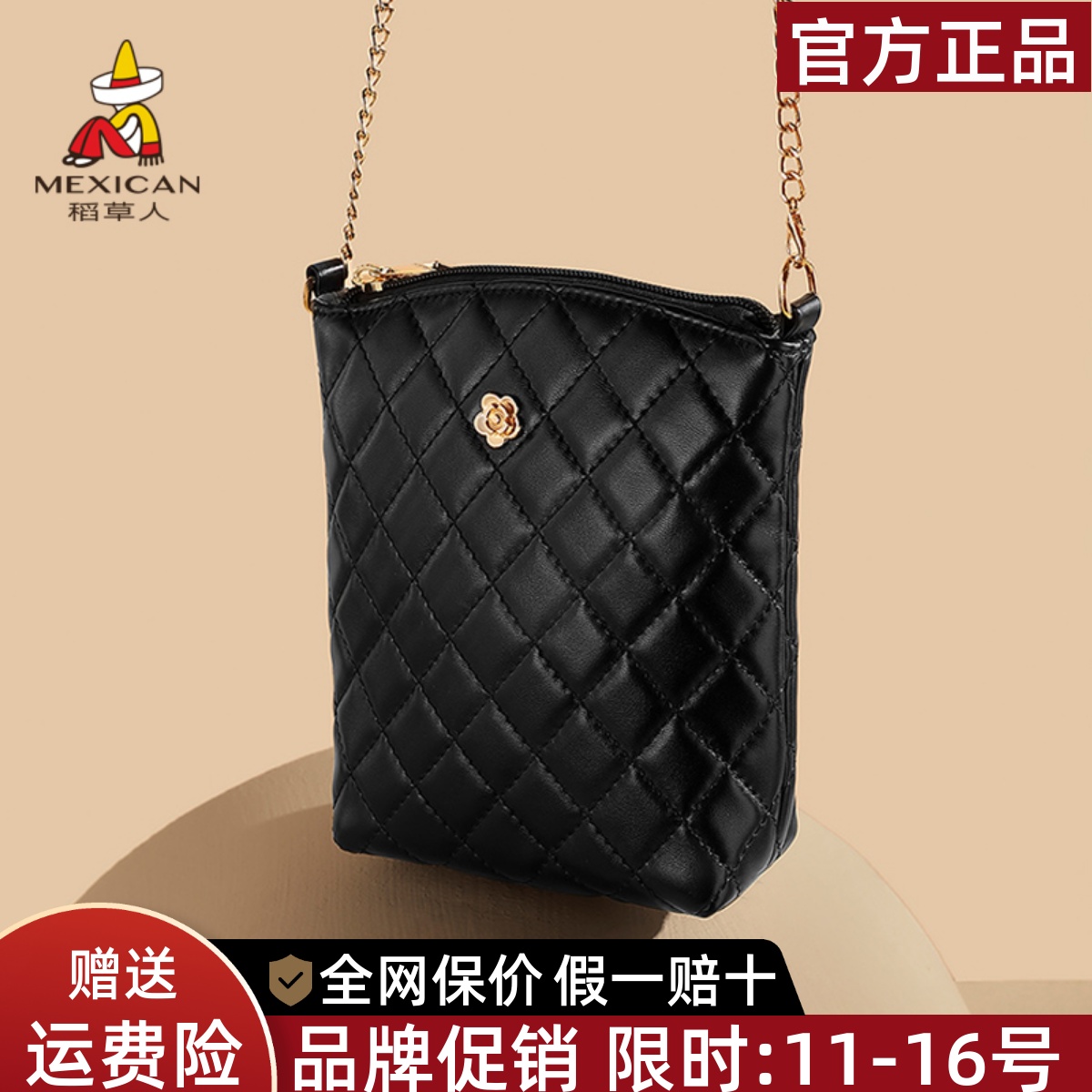 稻草人手机包包女2025新款小众菱格链条单肩包小香风斜挎小包正品