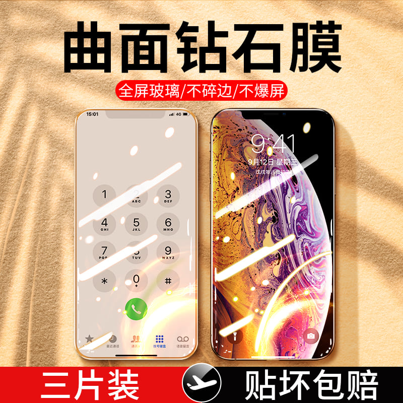 适用iphoneX钢化膜xr苹果X全屏iphonexr覆盖iphonexsMax手机xsmax全包边xmax钻石Xs防摔mas黑边ix全包ipx贴膜