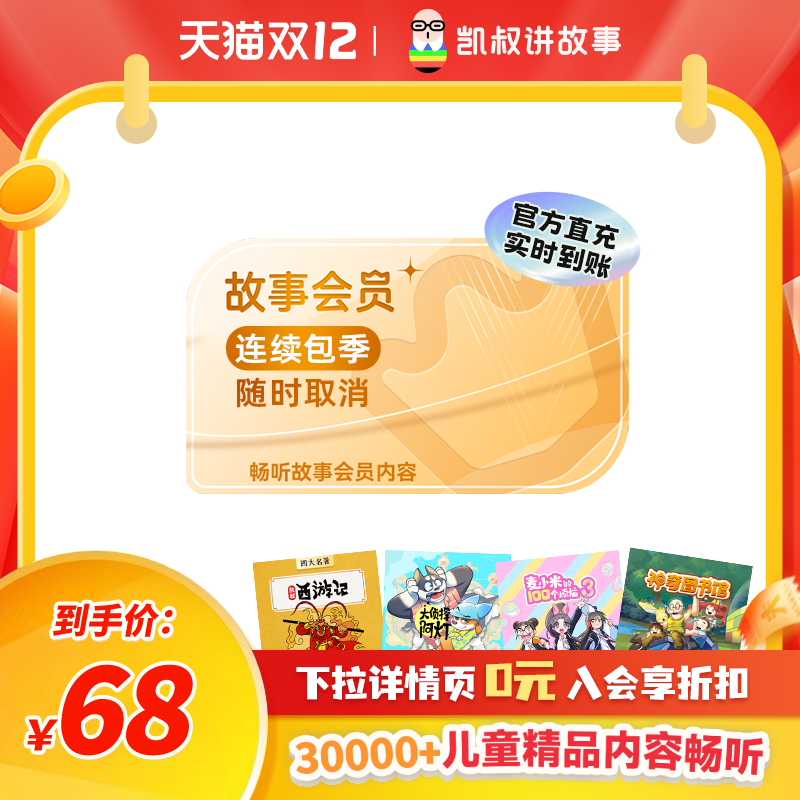 【连续包季】官方正版凯叔讲故事会员连续季卡3个月 手机号直充