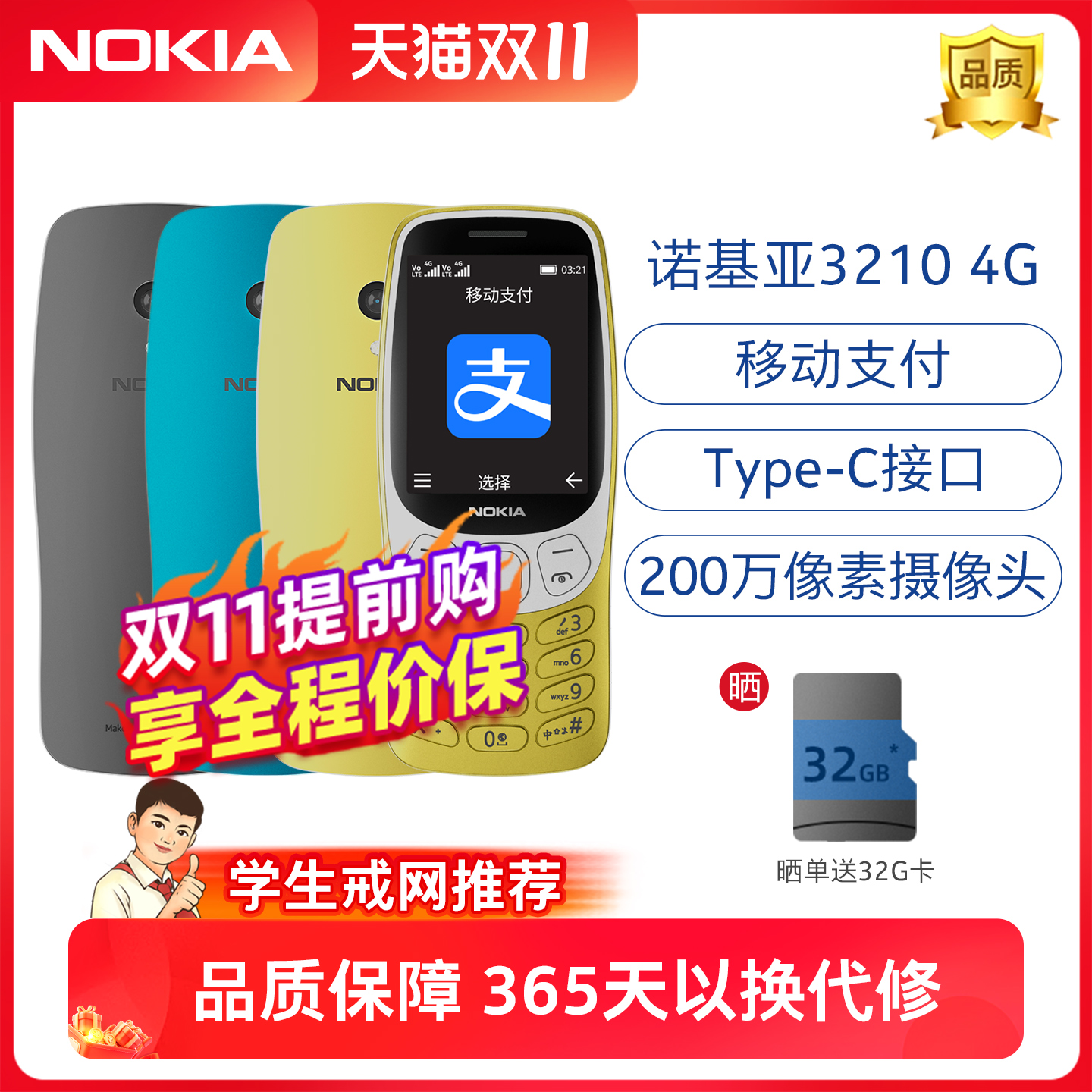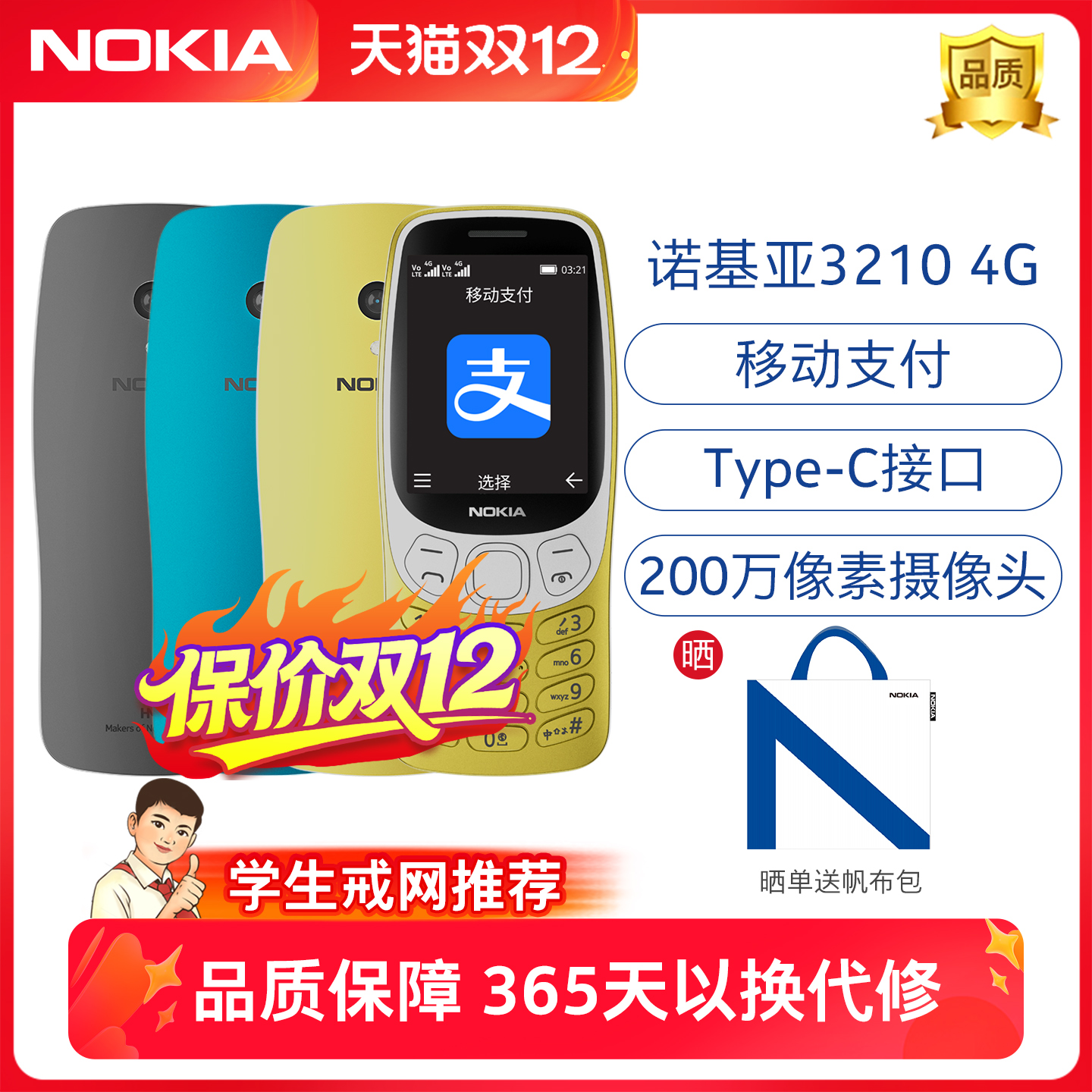 【学生手机推荐】诺基亚3210 4G全网通学生备用机手机按键学生戒网功能备用官方旗舰店官网2024新款